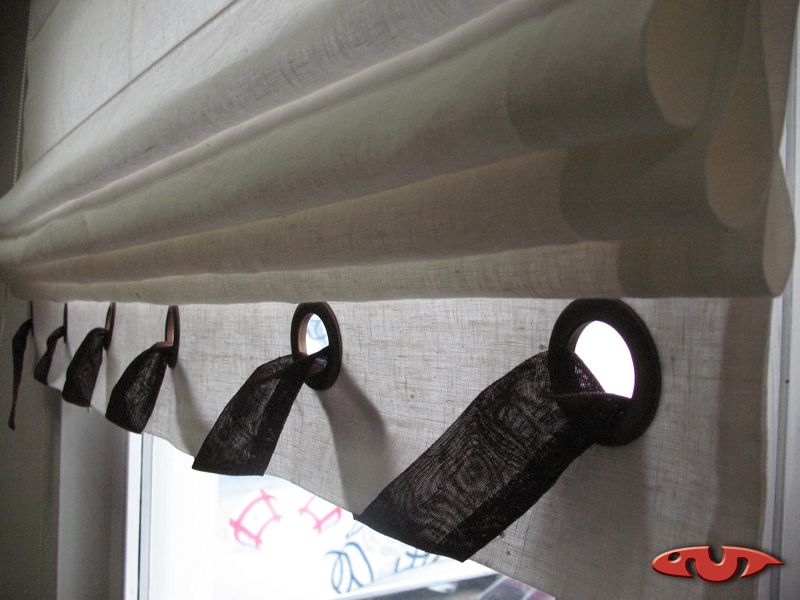 Paket zavjese  zavjesa od bijelog lana šivana po mjeri ukrašena efektnim smeđim ringovima i smeđom  trakom. U našim salonima zavjesa i namještaja u Zagrebu primjenjujemo individualni pristup klijentu.Radimo na području cijele Hrvatske po pristupačnim cijenama.